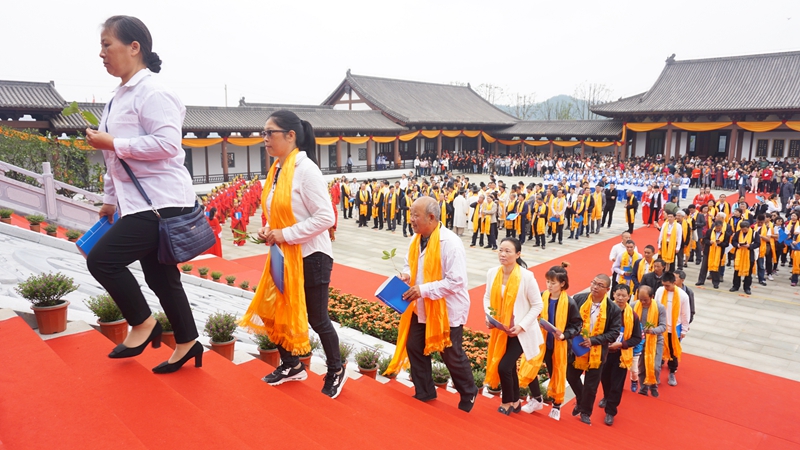 朱子后裔们敬献桂枝 建阳区委书记杨新强在致辞时表示,朱子是伟大的思想家、教育家,集儒学之大成者,其博大精深的理学思想在当今社会仍然有着许多启迪、借鉴和积极的教育意义,考亭书院的重建,将进一步推动优秀朱子文化和书院文化的繁荣发展。中国朱子学会副会长陈支平、中华炎黄文化研究会副会长张希清、香港朱子文化交流协会会长朱向、韩国国学振兴院副院长金相俊、台湾海峡两岸朱子文化交流促进会会长朱茂男分别致辞。祭祀现场庄严肃穆,在悠婉的音乐声中,主献官、亚献官、终献官敬献花篮,分献官向朱子雕像敬献桂枝。伴随着《祭文》,全体人员行鞠躬礼,齐声诵读《朱子家训》,深切表达对伟大先贤朱子的崇敬之情。 |