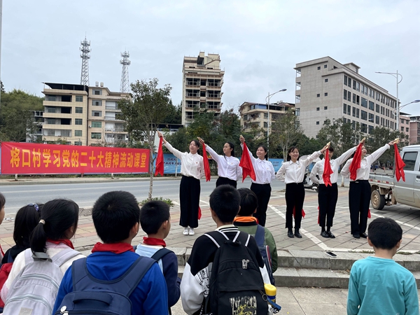 “我们选择了快板这种通俗易懂的形式,精心编排了音乐群口快板《贯彻落实二十大 振兴乡村正当时》,让党的二十大精神随着快板声入耳入心。”将口镇党委宣传委员陈雯介绍,这段快板虽只有200余字,但在成稿过程中进行了多次修改,既接地气又有内涵。