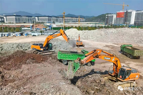 武夷新区金融CBD土方施工现场 近日,由武夷新区产控集团下属子公司高新公司建设的武夷新区芹口组团城镇污水处理厂及配套污水管网工程(一期)过渡期项目工程顺利竣工。该项目主要用于接纳生活污水及工业废水,投入运营后,将为园区企业污水排放提供便利。