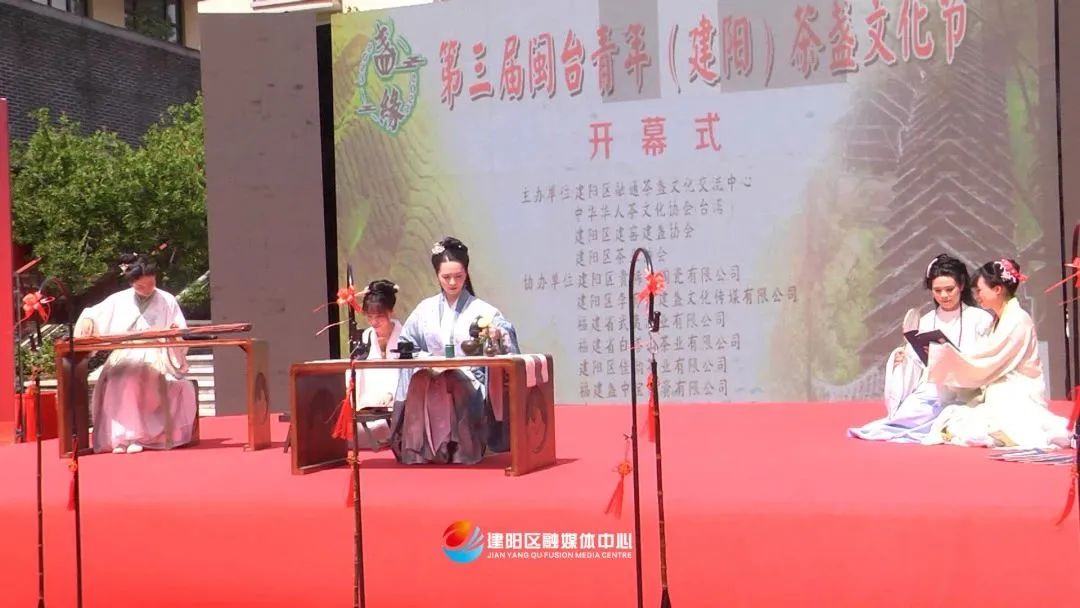 6月30日,“盏旺未来茶香两岸”盏缘·第三届闽台青年(建阳)茶盏文化节在建盏文创园开幕。南平市委常委、统战部部长陈善平,南平市台港澳办主任余丽芳,建阳区政协主席方丹青,大陆青年茶商、茶人,以及中华华人茶文化协会成员和台湾青年茶人代表等参加了活动。 此次活动以茶盏文化为纽带,凝聚共识,增进两岸青年的友谊和情感融合,展现茶盏文化独特的文化艺术魅力,进一步促进两岸青年对中华茶文化的认同,推动茶文化创新性发展和创造性转化。 活动中,表演者着汉服,以建盏点茶,将宋代盛极一时的饮茶方式以舞台表演的形式呈现,古韵浓厚。