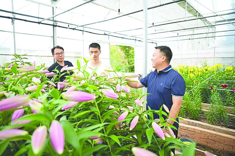 “林梢一点风微起,吹作人间百合香” ——延平百合花产业振兴样本调查 7月9日至11日,北京林业大学园林学院(国家花卉工程技术研究中心)院长助理、园林系主任孙明教授(左),博士后唐玉超(中),博导、林草专家、高级园艺师董钦金(右)一行来到延平,深入百合种业振兴项目、种质基因库和花卉物流交易中心,为延平百合把脉问诊,与当地深度洽谈合作。图为三位专家在种质基因库进行学术讨论。 (资料图片) 远山如黛,长河似练。金秋九月,一颗颗百合花种球贮藏在延平区大横镇广袤田野的冷库中,它们即将结束为期数月的“休眠”期,移栽花田,迎来下一季的绽放…… 百合花,花朵硕大,花色鲜艳美丽,是世界名贵花卉之一,也是南平市的市花,其在延平区的种植历史可追溯至20世纪80年代。从埋下第一粒人工种球开始到大面积推广种植,延平逐渐成为全国百合花鲜切花第三大主产区。从打破种球进口依赖,百合种源自繁突破1000万粒实现国产化,到主动牵手大院大所进行科研攻关;从推动国内三大百合花基地互动互补,到组建国企,开发高附加值产品;百合花产业在种源端、种植端、市场端不断深耕细作,主动延链补链强链,百合鲜切花种植面积达8500亩,畅销24个省市并出口新加坡,全产业链年产值达6.3亿元,百合花不仅成为了南平市的一张亮丽名片,更成长为促进共富的“幸福花”。 从零起步到全国第三大主产区 “20世纪80年代,在时任南平市(今延平区)副市长卢世钤的穿针引线下,上海市园林管理局在延平区茫荡山宝珠村试种百合花成功,在国际花卉界引发关注。人民日报海外版称‘看牡丹去洛阳,看百合去南平’。”被种植户称为“花仙”的延平区林业局花卉办主任陈文靖说起延平百合如数家珍。 1989年南平市第十届人大常委会第九次会议通过,决定百合花为南平市花。但那时,百合花仅是一种象征,直到被誉为“百合花种植第一人”的延平区宝珠村村民卢柳余在高山区开辟出第一片人工百合花田,把鲜切花卖到上海,成功实现脱贫致富,让农民们看到了“花样经济”的魅力。 1998年延平区在塔前镇推广百合种植,也正是这一年,陈文靖从大学园艺专业毕业,来到了塔前镇。 “当时百合花在塔前镇棚下村推广了大概16亩,33户。”陈文靖回忆。第二年,延平区百合种植扩大到了20亩,陈文靖也成为首批科技特派员深入田间地头,开始长期服务各地花农。 “百合花产业真正迎来大发展,是在2010年。”陈文靖说,当年延平争取到省上资金支持,在王台镇新坑村流转了360多亩的田地,统一平整土地,建设钢架大棚,宣传动员茫荡山等高山区的花农到王台镇进行规模化连片种植。随着该项目连续6年的资金扶持,百合花种植逐步从王台扩大到峡阳、炉下、南山等地,百合花产业逐步成为延平重点产业。 2011年延平区花卉协会注册成立,2012年延平区成立了花卉办,从技术和产业发展上给予指导扶持。2014年,延平区被授予“中国百合之乡”称号,“延平百合”获评国家地理标志证明商标。延平百合花产业从无到有,从小到大,迎来了发展的春天。 “科特派的技术支持,还有协会、政府在产品销售上的帮助,百合花产业一下就发展起来了。目前我们村适合种百合的田地基本上都种上了。”省人大代表、王台镇溪后村村支书,同时也是百合种植大户的魏长俊告诉记者。溪后村等各村积极推广“秋种百合—夏种水稻”的花稻轮作模式,不仅减少化肥用量,增加粮食产量,还提升了百合花品质,实现土地利用率与产能的双提升。 “在产业发展中,我们建立了‘科技特派员—协会会长—协会理事—种植户’四级网格化管理服务模式。从新品种推广、土壤改良、防寒抗冻、病虫害防治、市场拓展等各个环节进行服务,编制《百合花种植实用技术手册》,让种植户无后顾之忧。”陈文靖说。 为解决花农的资金问题,区委区政府积极协调农商、邮储、兴业等各大银行推出“百合贷”,不仅利率低、额度高,手续还更加简便。“不需要担保,不需要资产抵押。”延平区花卉协会会长叶盛立告诉记者,目前整个协会大概贷款3000到4000万元,仅他自己就贷了100多万元,用于种球、农资购买。金融“活水”的滴灌让百合花产业更加茁壮成长。 新平台、新渠道、新模式,让百合花产业绽放出无限活力。记者在区乡村振兴数字服务平台看到,这里专设“百合产业”板块,实时更新交易价格、库存余量、种植面积等核心数据,“立体式”呈现种植、加工、销售全链条运营图景。现已配套1700余万元资金,落地乡村道路升级等百合产业配套民生项目。高效衔接“到南平去、助乡村兴”平台,上架26个百合衍生项目,打造乡村新业态11个,成功吸引36名青年人回乡创业,有力推动“资源盘活”到“人才驱动”。 “从土地流转、品种选择、病虫害管理到对接市场销售,从开始种花起,就有大家帮,风险可比过去小多了。”回乡创业的新花农徐斐颇有感触。 截至目前,全区百合花种植面积达8500亩,全产业链年产值达6.3亿元。百合花成了名副其实的“致富花”。 打破种球进口依赖,主动牵手大院大所 在位于延平区大横镇的百合种源研发中心植物工厂里,“延平1号”百合长势喜人。“再过几个月,这批拥有自主知识产权的‘延平1号’百合就可以移栽下地培育。”延欣园艺科技有限公司技术负责人陈佩振自豪地说。 在百合花种植成本中,种球