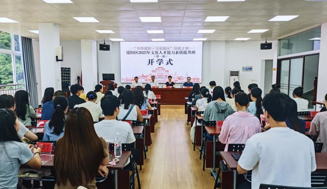 9月22日,建阳区举办“书香建阳·文化强区”培优工程——2025年文化人才能力素质提升班(第一期)。区委常委、宣传部部长、区总工会主席郑顺莲出席开班式并讲话。来自各乡镇(街道)和区直有关单位的文化业务骨干、新招聘的专业文化讲解员以及各景区资深讲解员等46名学员参加首期提升班。
