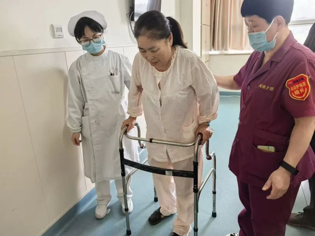 图为在建阳第一医院骨二科“免陪照护”病房,医护人员正在指导患者进行康复训练(由建阳第一医院提供) |
