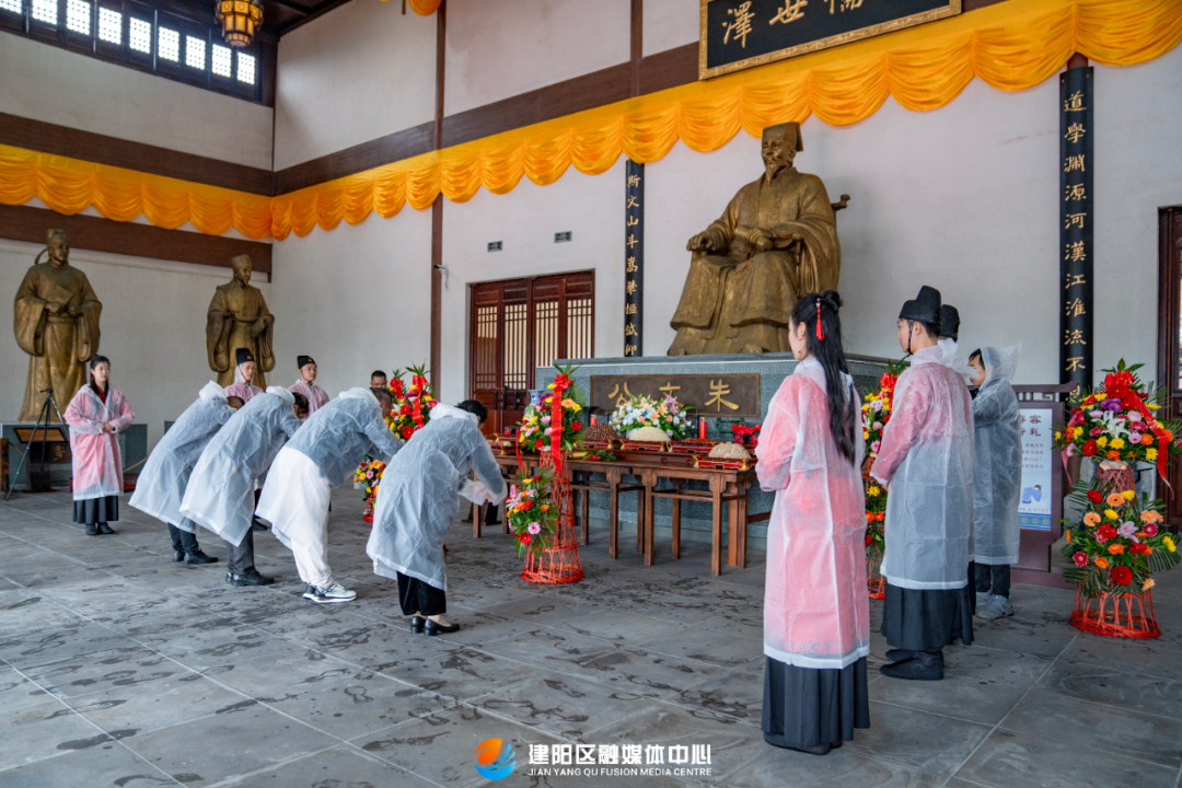“今年纪念朱子诞辰895周年活动的仪程是根据朱子编撰的《家礼》记载进行的,更加贴近‘朱子家礼’中记载的‘释奠之礼’。”建阳区优秀传统文化研究发展中心主任、活动负责人陈琳介绍道,“仪式增加了初献、亚献和终献的‘三献礼’,从开殿、敬献果酒,到佾舞、仪仗队伍都做了细致安排,让仪式更加庄重,凸显了我们对先贤的敬仰。”值得一提的是,这次新增的六佾舞,是依据古代八佾舞进行的一次创新改编,舞蹈安排在初献之前进行,作为整场活动的献礼。