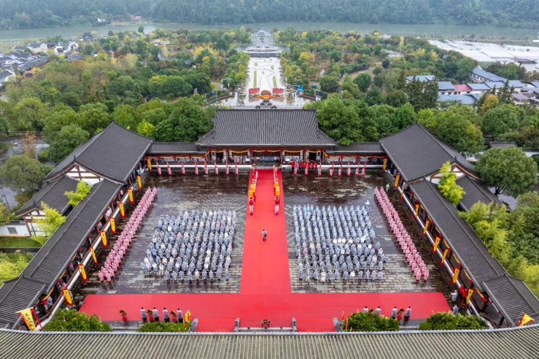 “开殿!——进酒馔……” 雅乐和鸣,佾舞翩跹。11月4日,农历甲辰年九月十五,正值理学宗师朱子诞辰895周年纪念日。细雨蒙蒙中,一场庄严肃穆的纪念活动在南平市建阳区考亭书院隆重举行。华东师范大学终身教授、博士生导师、考亭书院山长朱杰人,国际儒学联合会理事、武夷文化研究院名誉院长吴邦才,南平市朱子文化研究会常务副会长、武夷文化研究院院长吴礼清等众多专家学者、朱子后裔代表和社会各界代表、师生代表齐聚于此,共同缅怀先贤,传承中华优秀传统文化。 伴随着恢弘的礼乐、典雅的舞蹈,初献、亚献、终献等仪程依次举行。与祭者在赞者的引导下,神色恭谨地向朱子像行高揖礼。主祭祀嘉宾代表先后向朱子像敬献花篮,与祭者敬献桂枝。仪式最后,全体诵读《朱子家训》,琅琅书声中,先贤的思想精髓浸润人心。