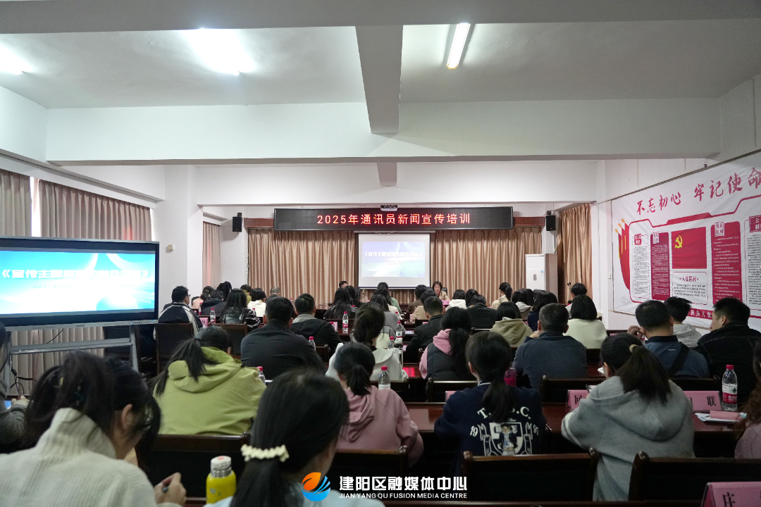 11月14日上午,建阳区举办2025年新闻宣传培训班,旨在进一步提升全区新闻宣传工作质量,提高新闻采编人员采写、编辑等方面的能力。各乡镇(街道)宣传委员、通讯员,区直有关单位通讯员以及区融媒体中心采编人员参加培训。