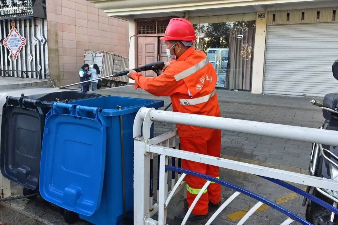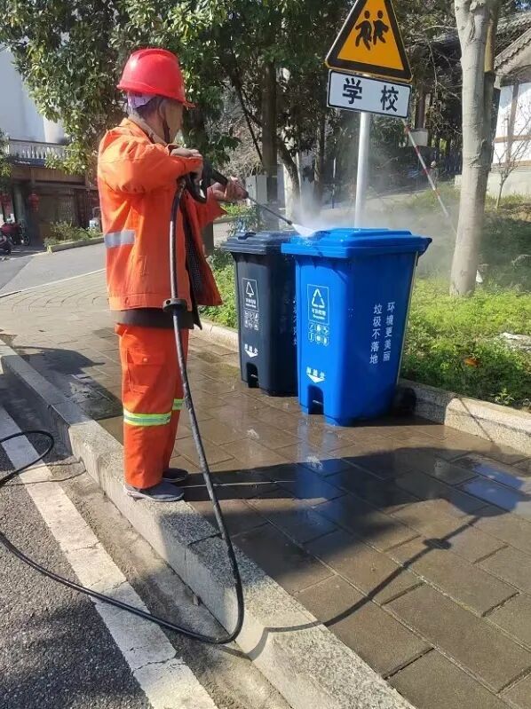 新桶箱体颜色鲜明、标识清晰易懂,采用了更耐腐蚀、抗冲击的优质材料,还增加了脚踏开盖、阻燃等人性化设计。 同时,为推动垃圾桶清洗工作向精细化管理转变,环境卫生服务中心制定垃圾桶清洗规范,要求使用高压水枪、长柄刷等工具,对垃圾桶的内壁、外壁、桶盖进行彻底刷洗,清洗后使用消毒液对垃圾桶内外进行消毒。