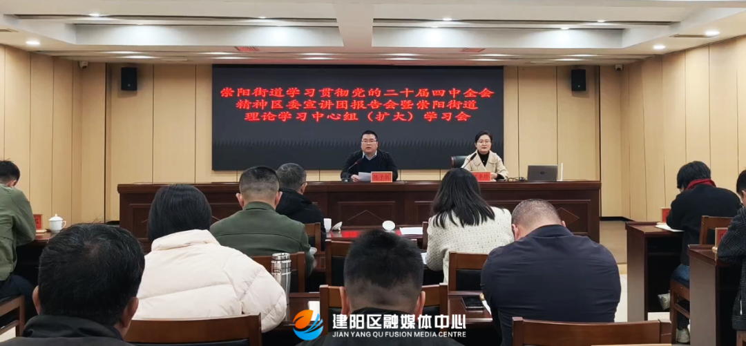 根据建阳区委统一安排,11月21日,学习贯彻党的二十届四中全会精神区委宣讲团报告会在崇阳街道举行。