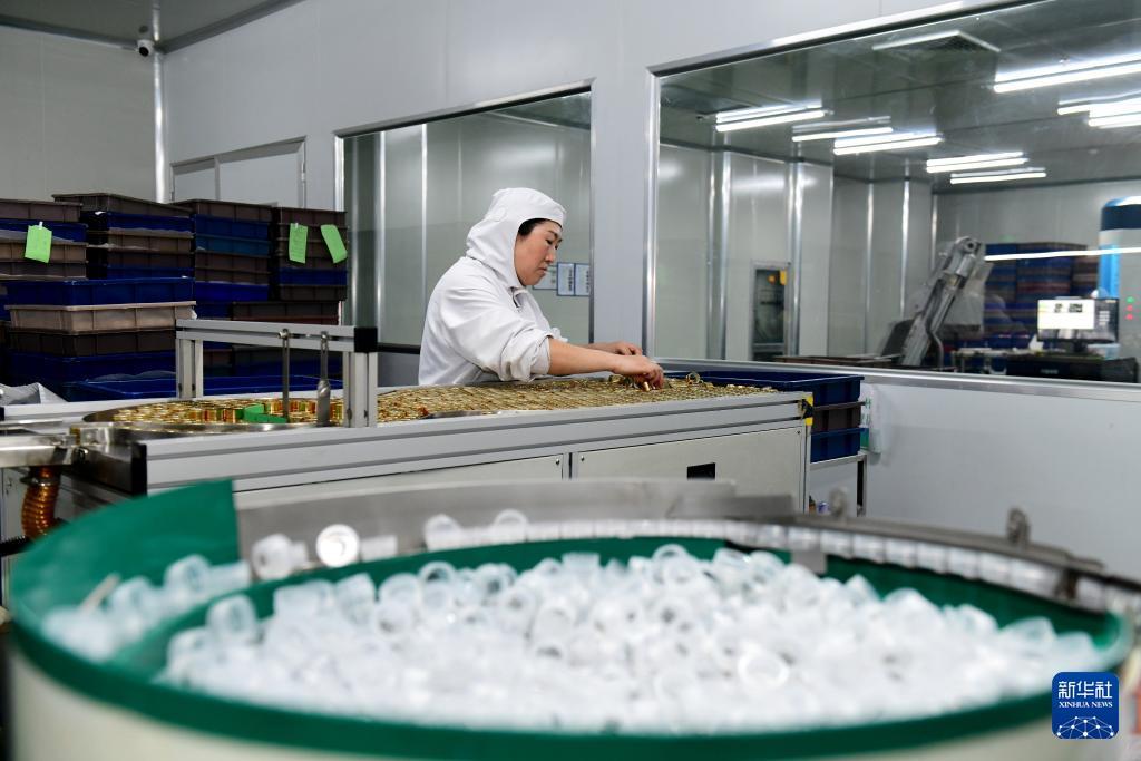 11月27日,在郓城县丁里长街道烟郓科技产业园,工作人员在瓶盖生产设备前忙碌。 近年来,山东省菏泽市郓城县丁里长街道链条式、集群化发展酒类包装产业,并将采煤塌陷区综合治理与发展特色养殖业相结合,不断通过产业兴旺助推乡村振兴。 新华社记者 郭绪雷 摄