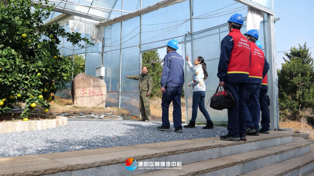 建阳区仁山桔柚生态果园工程主管张永兴:“计划把线路定在那边,现在这个我们使用起来第一个不安全,第二个不好用。” 国网建阳区供电公司水吉供电所网格长周源华:“可以,要立杆的话你这个场地可以。” 张永兴:“没问题,场地可以随便使用。”