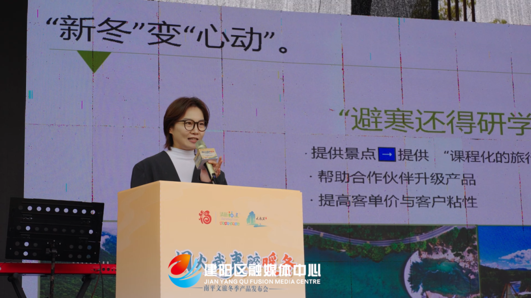活动现场,建阳区文旅推介代表围绕建阳马伏·熹云湾文化度假产品、麻沙杜潭文旅产品进行重点推介,诚邀游客到我区感受千载文脉浸润下的冬日暖意,解锁山水与人文交融的独特魅力。武夷山、光泽文旅推介官分别围绕武夷山冬季观景产品、光泽冬季露营新产品进行推介。同时南平市文旅整合全域精品资源,正式推出25个冬季暖阳·围炉观山推荐点位,满足游客登高赏景、文化沉浸、野外趣游的不同需求。