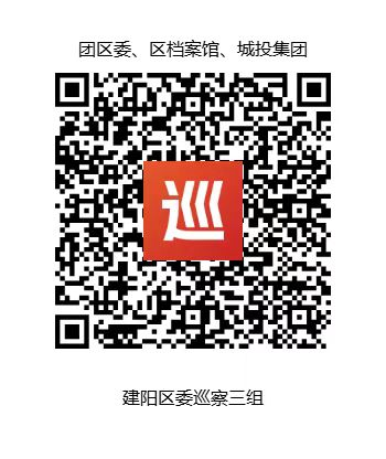 03 区委巡察三组 被巡察单位:团区委、区档案馆、城投集团 组 长:郭恒胜 副组长:苏荣缺 联系电话:18020930887(8:00-17:30) 邮政信箱:福建省南平市A032号邮政信箱; 举报信箱:南平市建阳区上水南路16号科技馆三楼大门右侧(团区委); 南平市建阳区人民西路498号大门口左侧(区档案馆); 南平市建阳区人民西路498号城投集团7楼电梯口旁楼梯口(城投集团) 举报二维码: