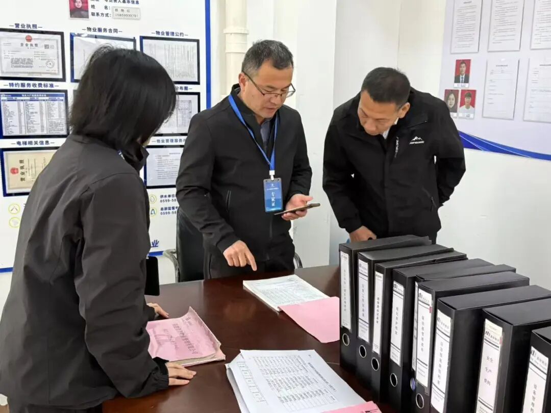 检查武夷悦·云庄内业相关资料 建阳区城管局供图 2025年度住宅小区物业服务质量星级评定工作于12月2日启动,评审组认真对照《南平市住宅小区物业服务质量星级评价表》,采取实地查看、现场走访、资料查验等方式,围绕各住宅小区应诉处置、绿化保洁、公共设施维护、安防监控运行、消防隐患排查等核心服务维度,对物业的综合服务能力进行评估。
