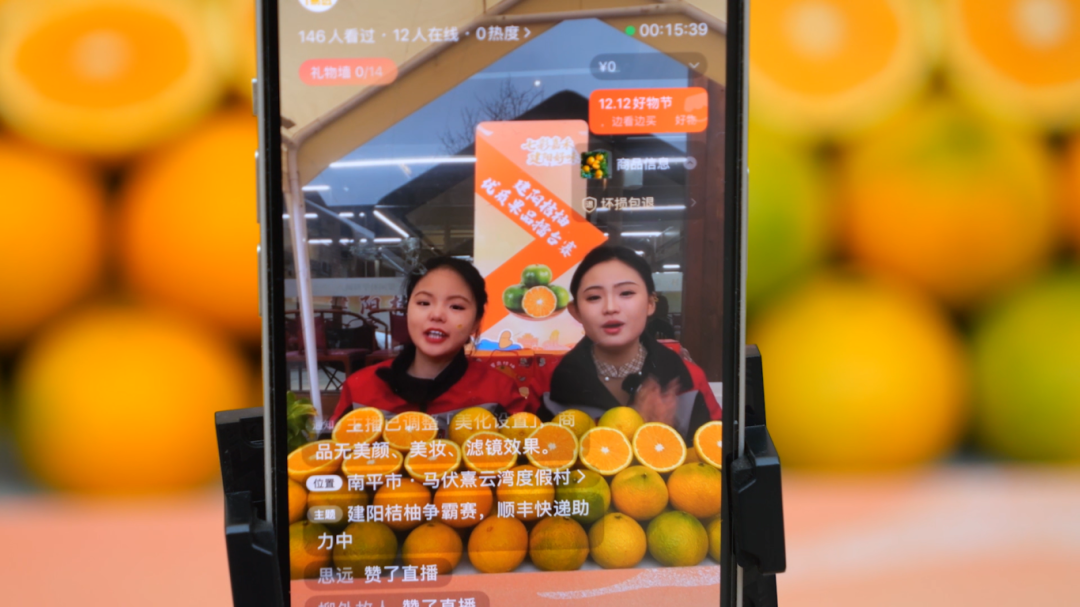 中国邮政福建省分公司直播团队 我们今天销售大概是500单左右。做这个其实就是为了把本地特色,南平独有的小众水果桔柚让更多的人能知道,让全国五湖四海的朋友可以尝到它独特的风味,希望能给这款农产品做一个宣传。守护与温暖的陪伴,共同编织出秋日里最动人的运动篇章。 建阳桔柚兼具桔的清甜与柚的爽脆,果肉饱满、汁液丰沛‧‧‧‧‧‧在“福农优品·我在家乡等你来”电商集市内,顺丰驿家易选福建区的直播团队热情地向客户介绍建阳的特质,助力建阳桔柚走向更广阔的市场。