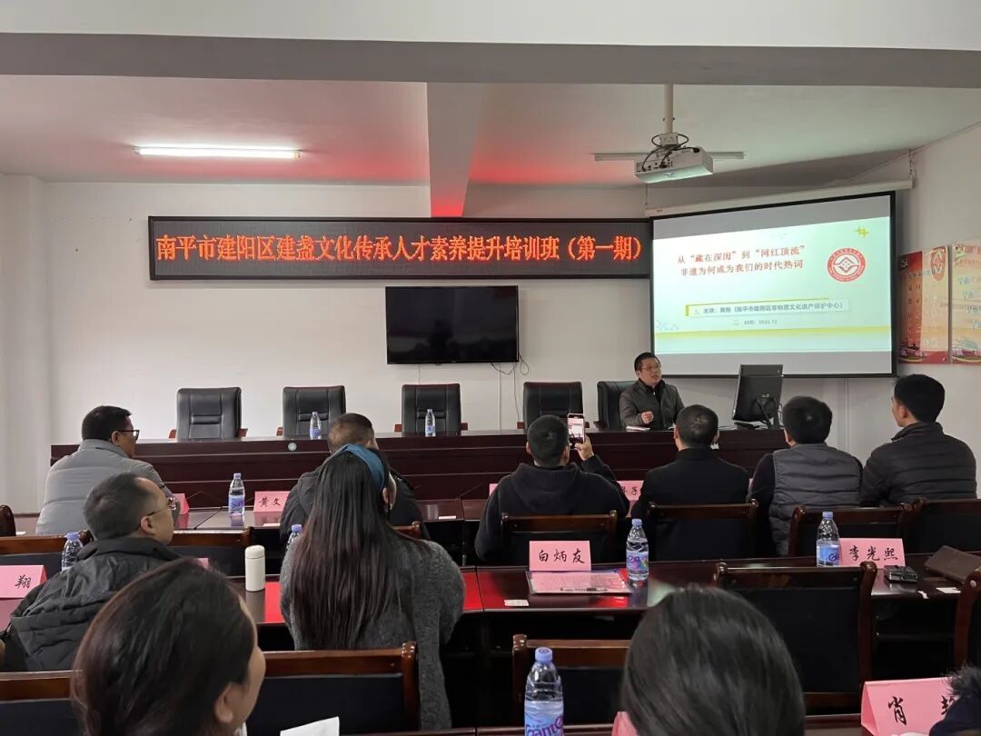 12月16日,建阳区首届建盏文化传承人才素养提升培训班在水吉镇后井村开班。省、市、区建盏非遗传承人代表参加培训。本次课程采用“大师工作室+文化旅游基地+专家课堂+自学”融合模式,并通过理论构建、美学创新及市场赋能等三大内容模块,在5天的课程里系统、全方位地提升学员能力。