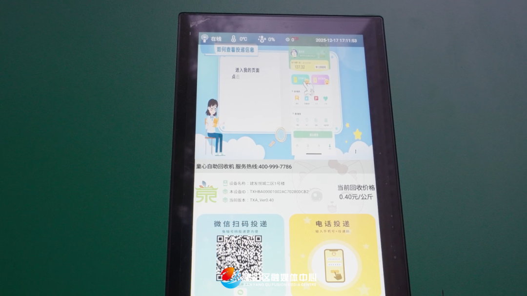 据了解,这台智能回收箱专门接收家庭厨余垃圾、餐厨垃圾等易腐烂、含有机质的生活垃圾。市民只要通过扫描箱体二维码,即可开启箱门投放,箱门关闭后,设备会自动完成称重、计数,并精准核算出对应收益。