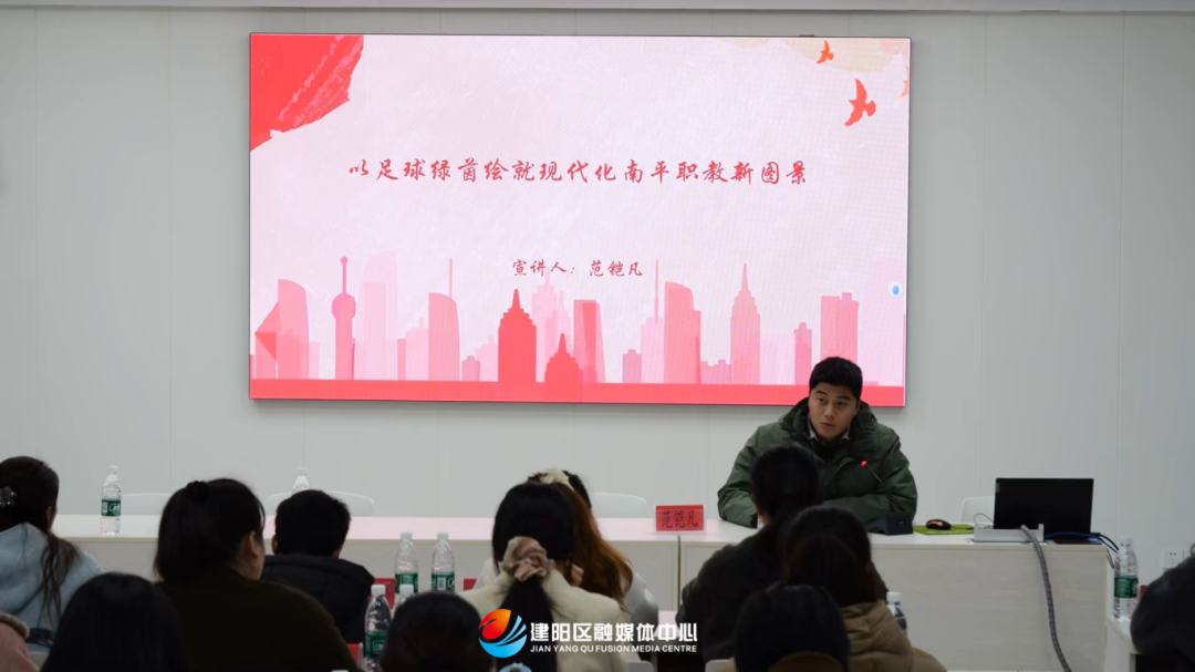会上,南平青年宣讲团成员许庆庆结合廖俊波同志先进事迹以及自身工作实际,作《学习廖俊波先进事迹,深入领会党的二十届四中全会精神》主题宣讲;南平青年宣讲团成员范铠凡通过生动的职教体育人用足球传递力量、用青春培育人才的教学案例和实践经验,作《以足球绿茵绘就现代化南平职教新图景》主题宣讲,对全会精神进行细致解读,引导服务基层的大学生志愿者深刻把握国家发展大局与政策导向,凝聚青春力量,服务区域发展。
