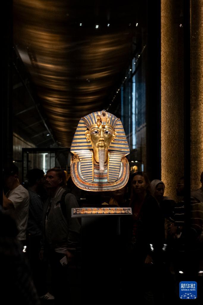 这是12月20日在埃及吉萨的大埃及博物馆拍摄的法老图坦卡蒙的黄金面具。 大埃及博物馆是世界上最大的专门展示单一文明(埃及文明)的博物馆,占地约50万平方米,馆藏文物超过10万件,于11月4日正式向公众开放。 新华社记者 辛梦晨 摄