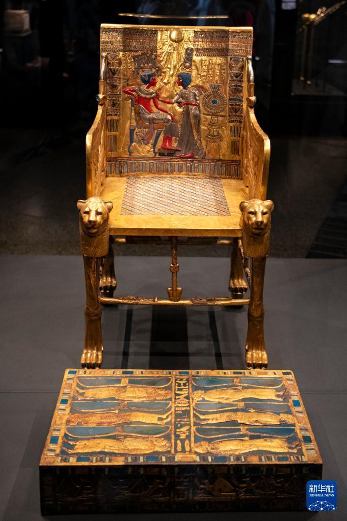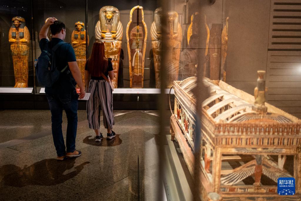 这是12月20日在埃及吉萨的大埃及博物馆拍摄的展品。 大埃及博物馆是世界上最大的专门展示单一文明(埃及文明)的博物馆,占地约50万平方米,馆藏文物超过10万件,于11月4日正式向公众开放。 新华社记者 辛梦晨 摄