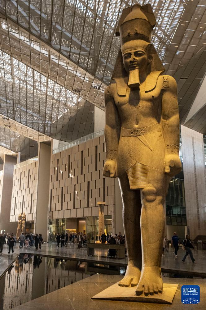 这是12月20日在埃及吉萨的大埃及博物馆拍摄的法老拉美西斯二世巨像。 大埃及博物馆是世界上最大的专门展示单一文明(埃及文明)的博物馆,占地约50万平方米,馆藏文物超过10万件,于11月4日正式向公众开放。 新华社记者 辛梦晨 摄