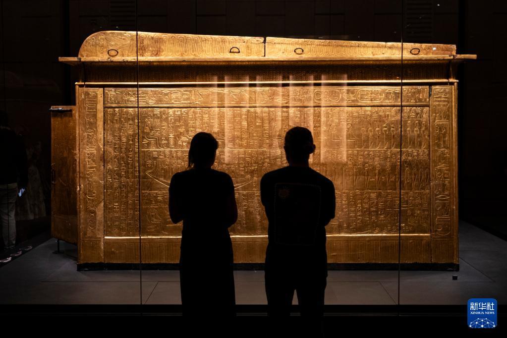 12月20日,游客在埃及吉萨的大埃及博物馆观赏法老图坦卡蒙的神龛。 大埃及博物馆是世界上最大的专门展示单一文明(埃及文明)的博物馆,占地约50万平方米,馆藏文物超过10万件,于11月4日正式向公众开放。 新华社记者 辛梦晨 摄