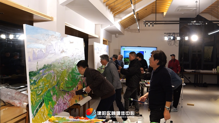 18日晚,在马伏村徐里工作室还举办了笔会活动。画家们分为油画与国画两组,在范迪安、徐里两位艺术家的带领下集体创作。油画组聚焦于“燕子窠生态茶山”的产业新貌与“黄岗山国家公园”的原始壮丽,以油彩描绘闽北的生态画卷;国画组则挥毫泼墨,围绕“考亭书院朱子文化”的千年文脉与“绿色生态万紫千红”的缤纷意象,以水墨意境抒写人文与自然的和谐诗篇。