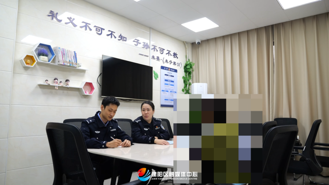 在“正苗启德”警务站,帮扶民警正在向一位迷途少年的家长了解近期状况。针对未成年人保护工作中存在的社会治理问题,我区于2022年探索推行“正苗启德”工作机制,成立“正苗启德”关爱团,建成29所覆盖全区的宣教室,建优“正苗启德”警务站,孵化成立全省首家专司未保工作的社工中心,为未成年人量身制定帮扶帮教方案。