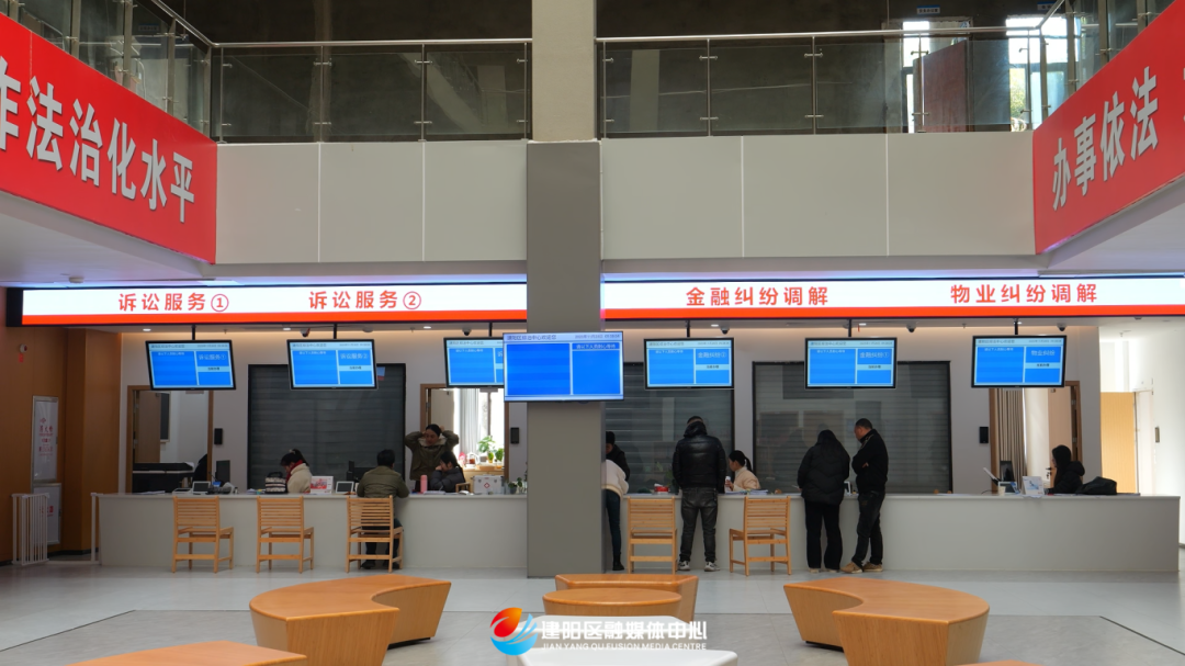 建阳区综治中心采用“1中心+6常驻+2轮驻+N吹哨报到”模式,设有13个便民窗口、14个功能室,形成了“行业调解先行、法院诉讼断后”的分层化解模式。