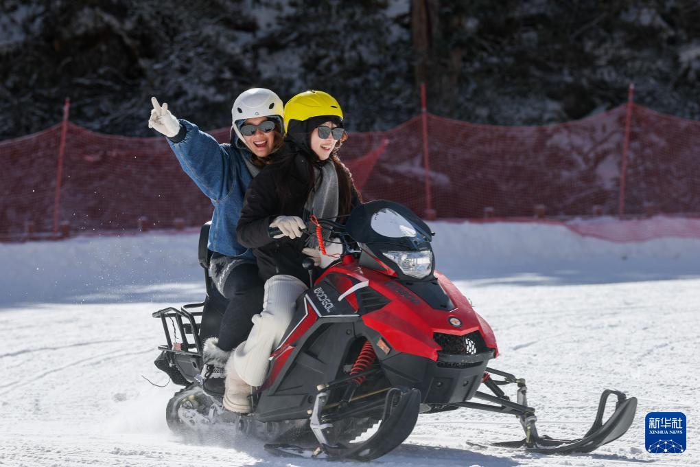 1月5日,在理县毕棚沟滑雪场,两名游客在玩雪地摩托车。 1月5日,以“激情冰雪 活力四川”为主题的第十二届全国大众冰雪季(四川分会场)暨四川省第八届全民健身冰雪季活动在阿坝州理县毕棚沟滑雪场启幕。启动仪式上的川渝越野滑雪赛、冰雪装置打卡、冰雪动漫、冰雪非遗市集等嘉年华活动,让广大冰雪爱好者感受四川冰雪的独特魅力。 新华社记者 江宏景 摄
