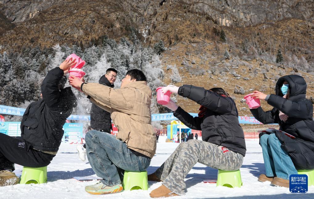 1月5日,游客在理县毕棚沟滑雪场里玩“传雪挑战”游戏。 1月5日,以“激情冰雪 活力四川”为主题的第十二届全国大众冰雪季(四川分会场)暨四川省第八届全民健身冰雪季活动在阿坝州理县毕棚沟滑雪场启幕。启动仪式上的川渝越野滑雪赛、冰雪装置打卡、冰雪动漫、冰雪非遗市集等嘉年华活动,让广大冰雪爱好者感受四川冰雪的独特魅力。 新华社记者 江宏景 摄