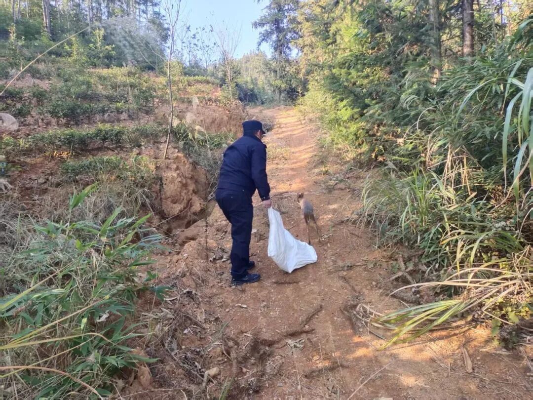 1月8日,建阳莒口森林派出所辖区内上演了一场温暖人心的救助故事。一位群众在山林间劳作时,偶然发现一只山麂。这只山麂虽无明显外伤,但精神略显萎靡,行动迟缓。山麂是国家“三有”保护动物,群众没有丝毫犹豫,立即联系了莒口森林派出所。