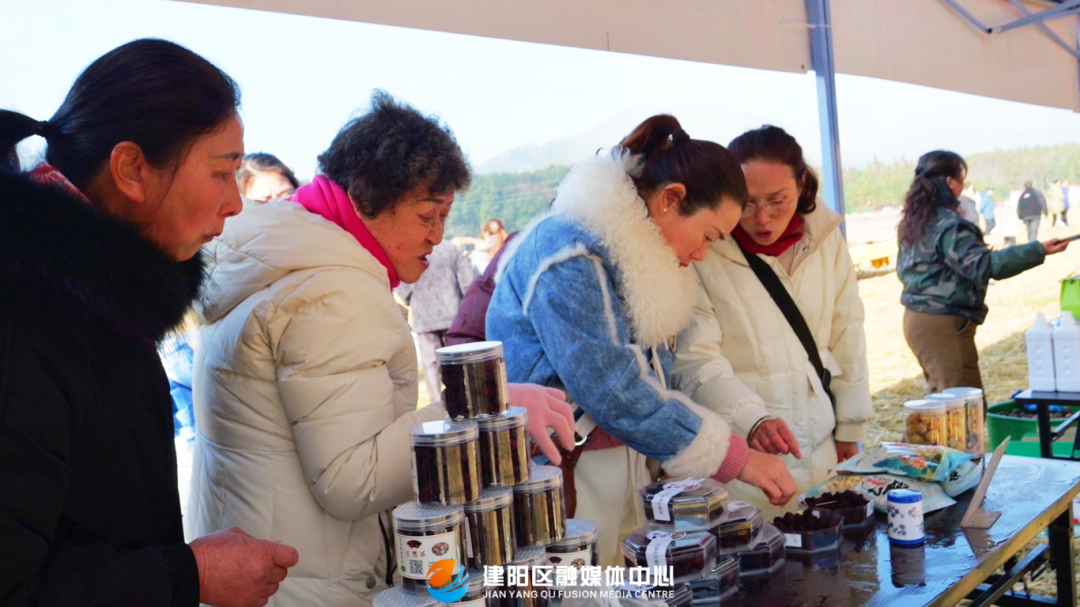 活动现场人头攒动,暖意融融,精彩的文艺表演轮番上演。市集区域则烟火气十足,各具特色的摊位整齐排列,祝中古法红糖、小湖杨梅干、水仙茶、山茶油等农特产品琳琅满目,游客们纷纷驻足品尝、购买。