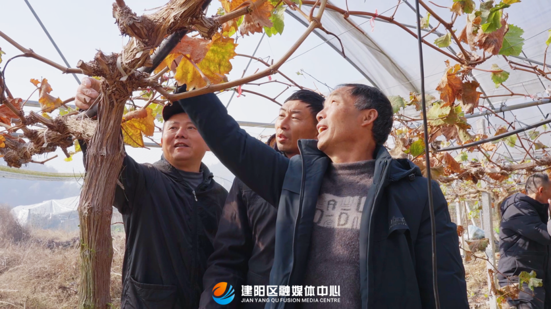 南平市人大代表刘贵道:“这两个都是尖头芽,花芽分化不知道怎么样,那我们为了留产量,这个地方可能还是要留2芽。” 1月8日,在位于建阳区麻沙镇水南村的葡萄种植大棚里,“乡土科特派”刘贵道正在给种植户们讲解如何修剪“阳光玫瑰”品种。