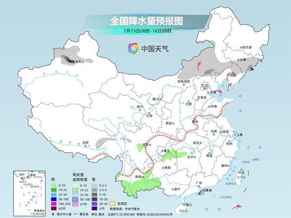 明天,新疆伊犁河谷和沿天山地区、内蒙古中东部、吉林中东部、辽宁北部等地部分地区有小到中雪,其中,新疆伊犁河谷、吉林东部等地局地有大雪或暴雪。湖南西北部、重庆东南部、贵州北部、云南中东部和西南部、广西西部等地部分地区有小雨。