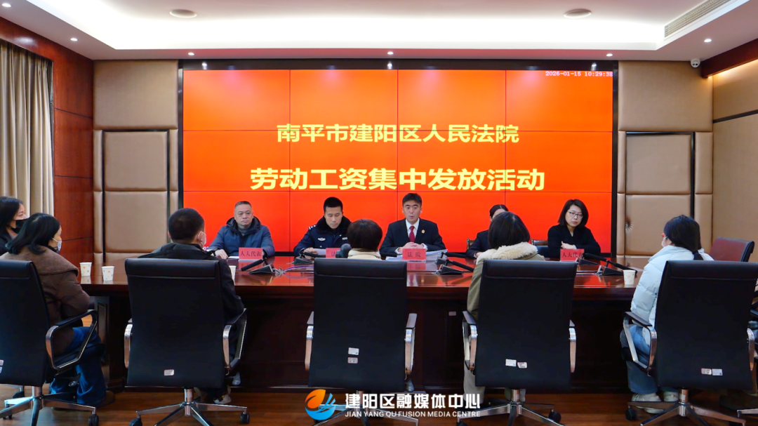 民生无小事,枝叶总关情。1月15日上午,建阳区人民法院在执行指挥中心举行劳动工资执行款发放活动,将389089.5元执行到位的工资款,发放至务工人员手中。活动邀请市区两级人大代表到场见证。 活动现场,执行法官逐一核对务工人员身份信息,现场办理领款手续,30名务工人员顺利领到了拖欠已久的工资款,开开心心迎新年。