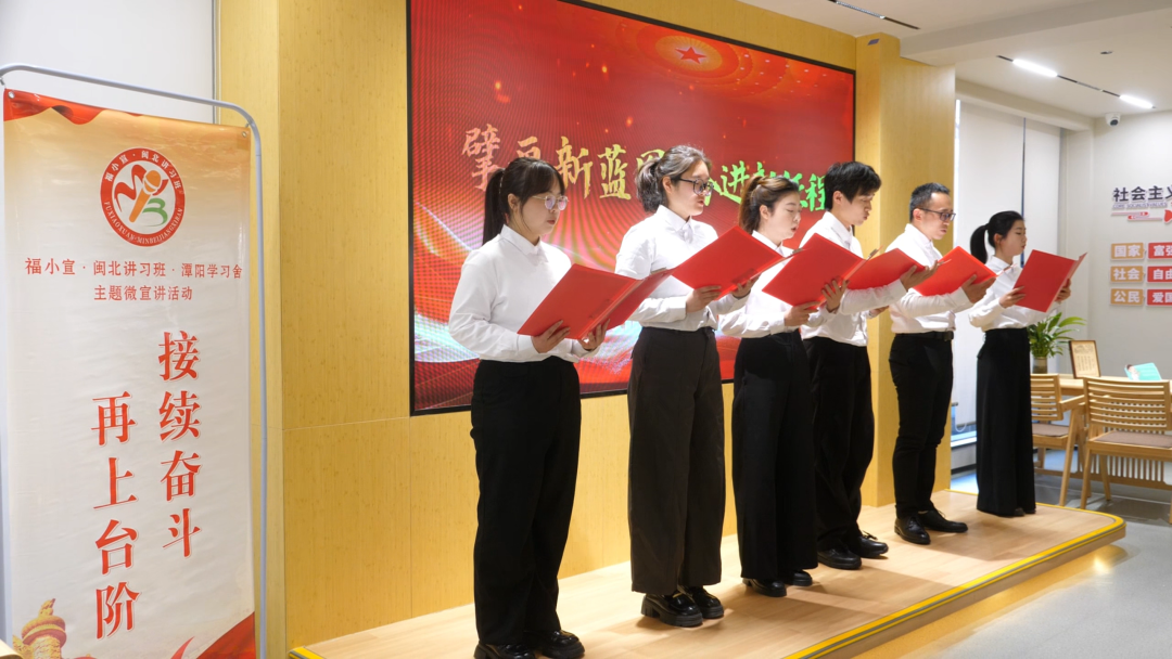 活动中,童游街道青年宣讲队献上诗歌朗诵《擘画新蓝图 奋进新征程》,以铿锵之声点燃全场,将活动推向高潮,激昂传递出青年一代接续奋斗的坚定信念。