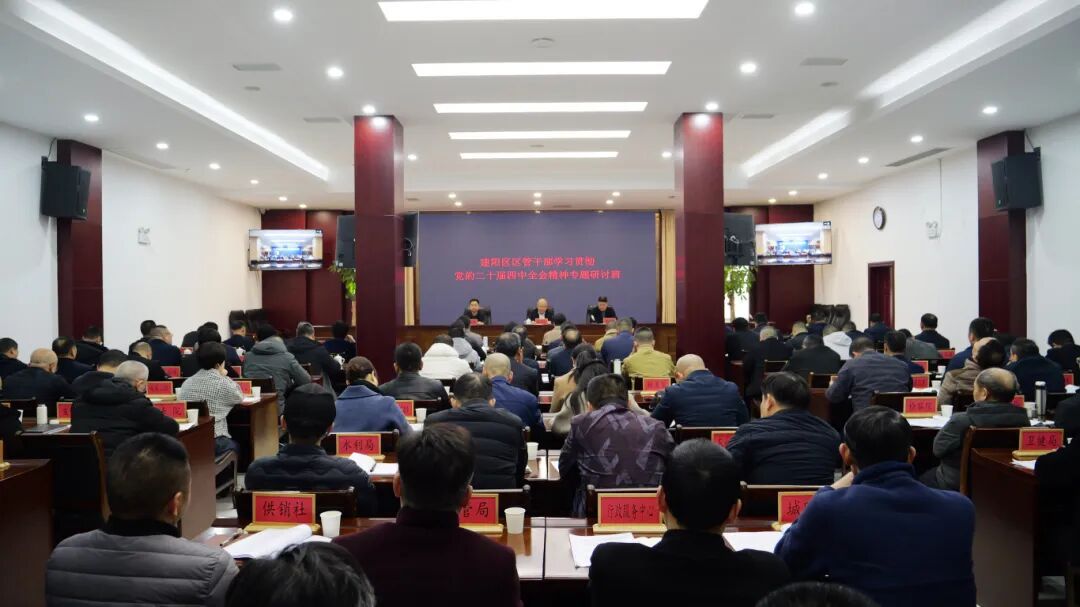 1月18日,建阳区区管干部学习贯彻党的二十届四中全会精神专题研讨班举行。区委书记谢启龙作开班动员及专题辅导报告。谢启龙强调,要坚持以习近平新时代中国特色社会主义思想为指导,深入学习贯彻党的二十届四中全会精神,一体学习贯彻省委十一届九次全会、市委六届十次全会、区委十四届九次全会精神,发挥区管干部“关键少数”的示范引领作用,带动全区广大党员干部群众深学细悟、真信笃行,以高度的政治自觉、思想自觉、行动自觉,扎实推进“十五五”时期建阳高质量发展,奋力谱写新时代现代化“美好建阳”新篇章。
