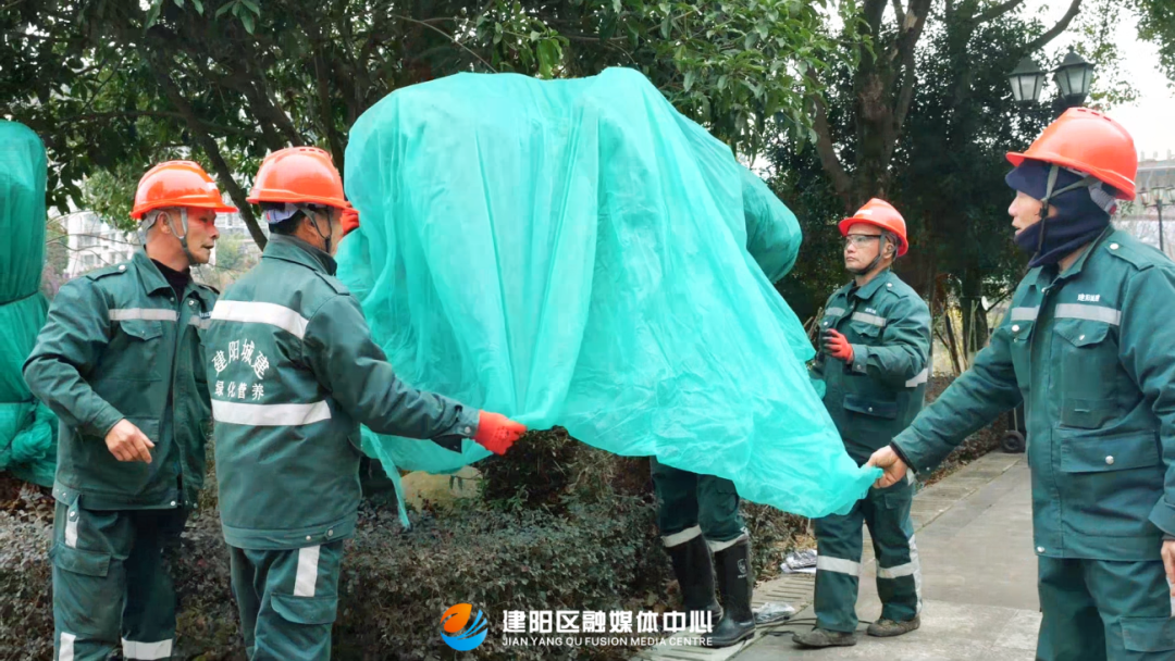 为应对寒潮可能带来的园林冻害,建阳区城市管理和综合执法局“以寒为令”,迅速启动防寒防冻工作,多措并举确保绿化植物安全过冬,维护城市生态景观。 1月21日,在城区七贤公园,园林工作人员正在对香樟、银杏、樱花等树木的病枝和枯枝进行修剪,对矮灌植物进行覆膜保温,确保容易遭受冻害的植物安全过冬。