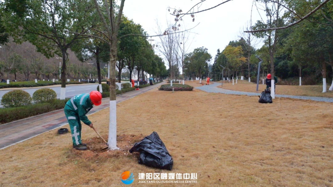 建阳区城市管理和综合执法局园林服务中心绿化组工作人员罗应婕:“对一些乔木进行病枝和枯枝的修剪,减少蒸腾作用,减少树木营养的消耗。用土工布,给它们进行覆膜,保护植物不受天气冻害的影响。” 截至目前,全区共完成约12000棵行道树的涂白工作、覆盖防冻膜范围超过3000平方米。下一步,建阳区城市管理和综合执法局将继续根据天气变化和植物生长情况,建立健全完善的管护措施,确保全区园林植物在冬季保持良好生长状态,为市民打造更多的绿色生态空间,提升城市的整体景观品质。