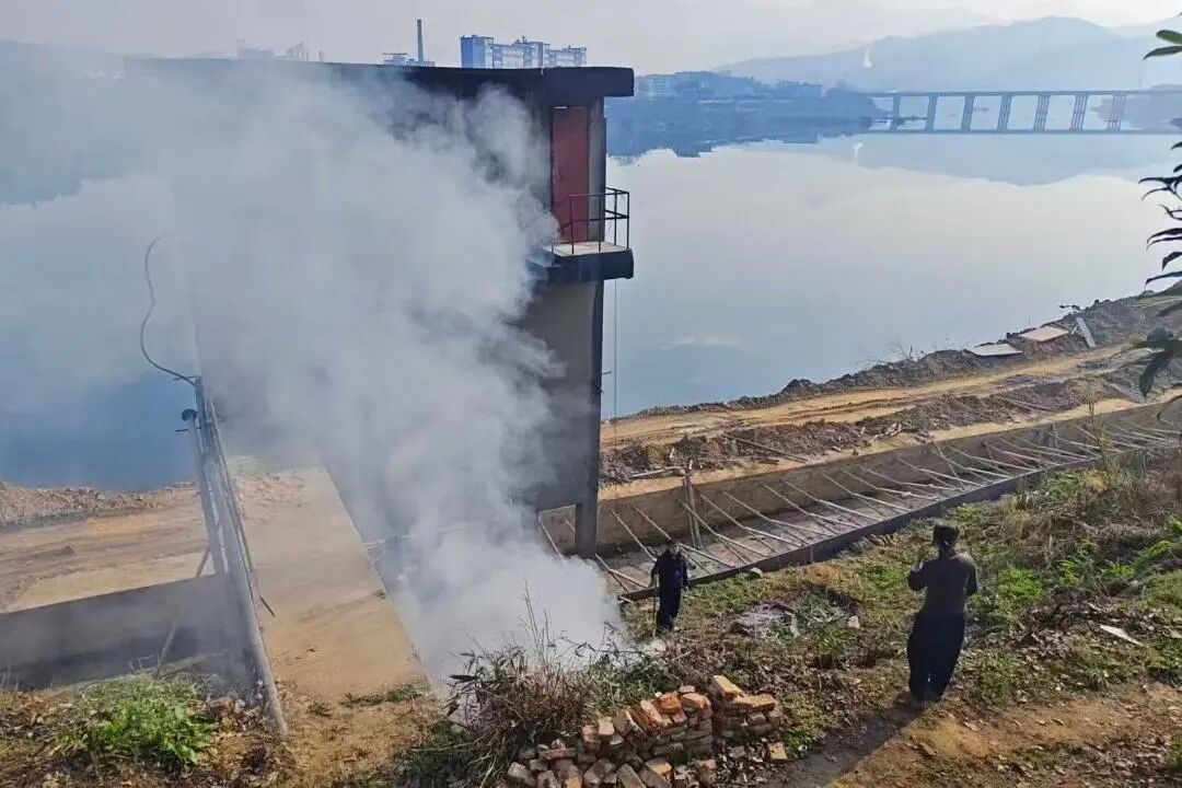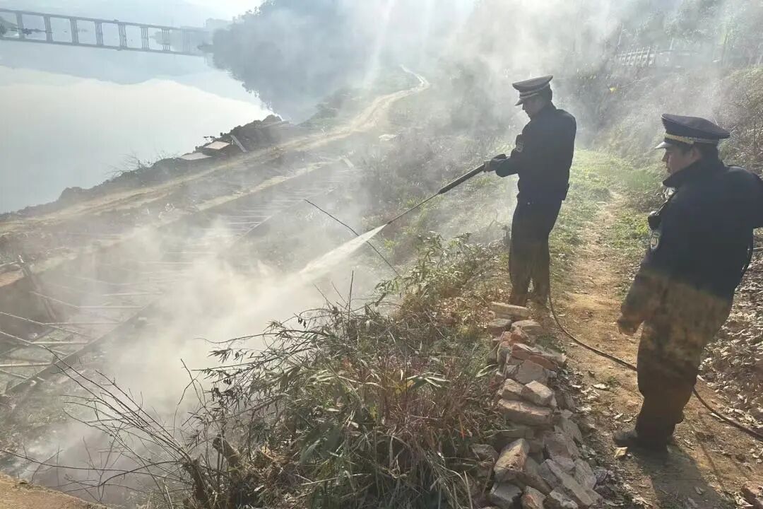 1月25日 建阳区城市管理和综合执法局 水南中队执法队员 在落实日常网格化巡查时 发现民主南路河岸边 冒出滚滚浓烟 执法队员立即赶往现场