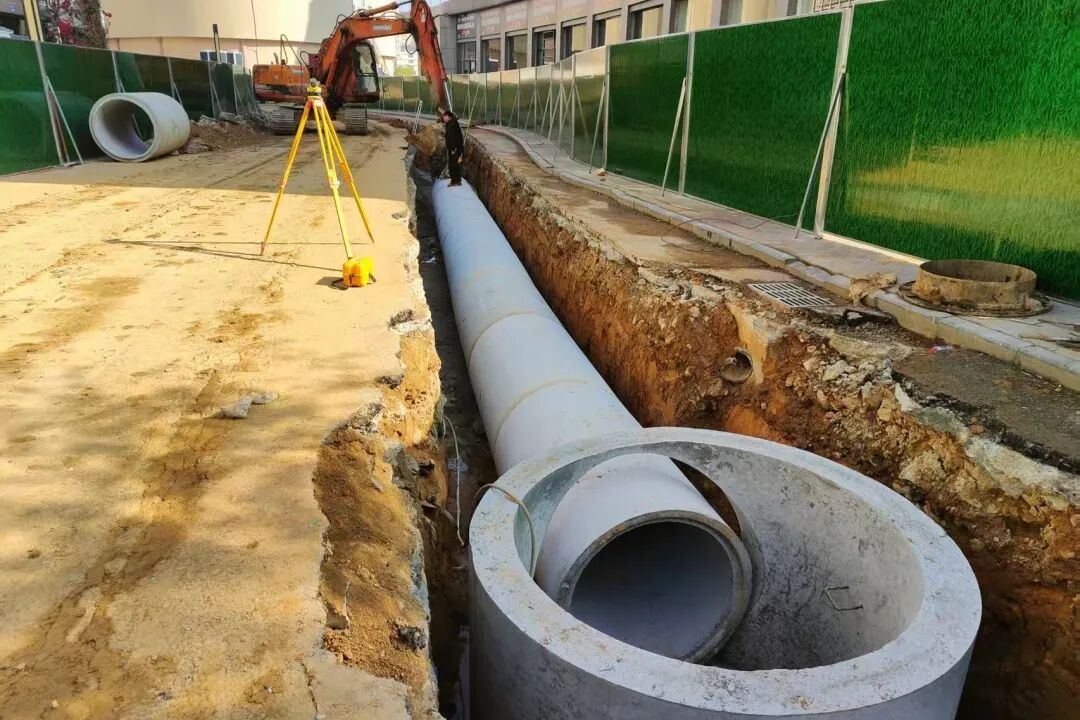 更换1000mm大口径水泥雨水管道 改造完成后,雨水流通效率显著提升,小区周边积水内涝问题得到根本解决。