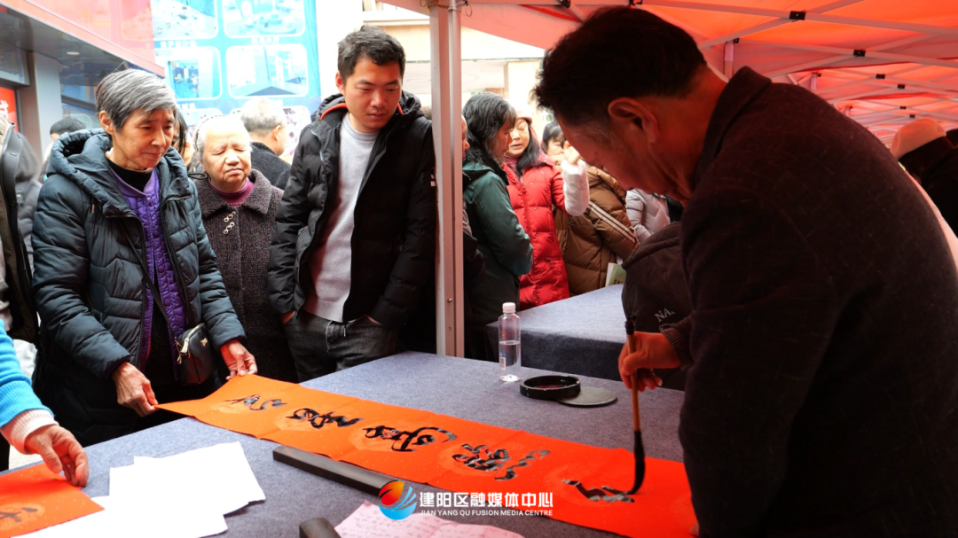 活动现场,书法爱好者们挥毫写春联、送“福”字,建本刷印、剪纸等非遗技艺轮番登场,向前来参加活动的市民免费派送新春祝福。
