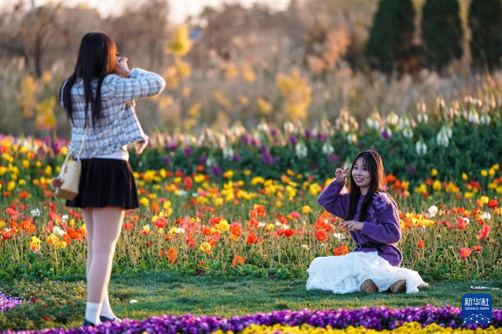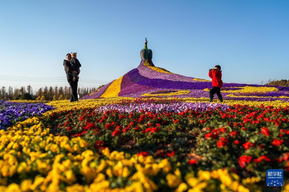 2月10日,市民、游客在昆明市呈贡区的七彩花海公园拍照。 临近春节,“春城”昆明处处花卉绽放。当地依托云南鲜花产业的资源优势,积极推动“鲜花经济”与生态文旅深度融合,在多个公园精心打造花卉景观,吸引大量游客,促进美丽经济发展。 新华社记者 彭奕凯 摄
