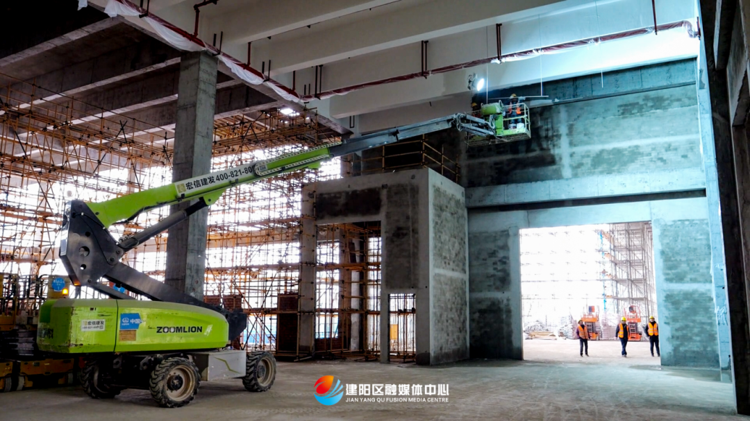 中建海峡建设发展有限公司生产经理穆和芝:“目前进度情况是主体结构完成70%,砌体结构完成50%,装饰装修正在同步进行。”
