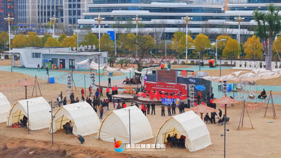 崇阳溪漫游道(建阳段)起终点公园的草地广场,向来是市民户外露营、美食品鉴、亲子休闲的绝佳之选。春节假期期间,这里更是成为“欢乐磁场”,吸引着众多返乡游子与家人一同来到这里围炉煮茶。大家一边品茗,一边感受传统民乐的独特魅力。
