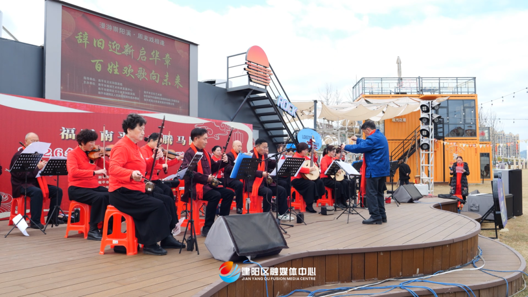 下午3点,“我们的中国梦 文化进万家”百姓大舞台春节系列活动——新春民乐演奏会在崇阳溪漫游道(建阳段)起终点公园热闹开场。来自永同昌艺术活动中心的表演者们满怀激情,演奏了《闹新春》《我和我的祖国》《春节序曲》《天竺少女》《映山红》等一首首欢快动听的曲目,用音符描绘年味,用旋律传递祝福。