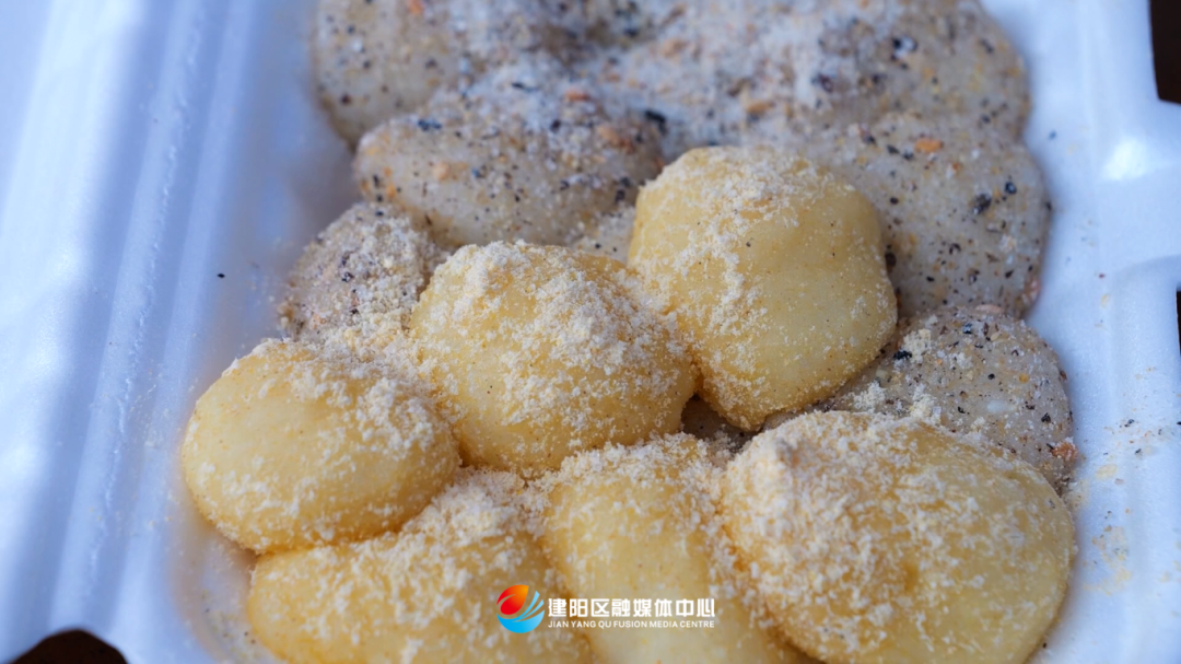 莒口镇马伏村村民王洪梅:“从初一到初六今天人流量都很多,麻糍粿我们是上午打一次、下午打一次,都卖得光光的。”