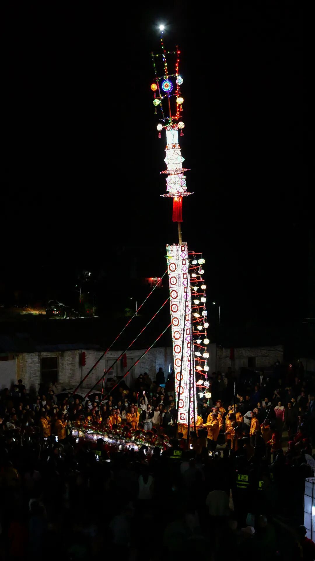 夜幕下,村民们抬着花灯穿街走巷,所到之处烟火升腾、鞭炮齐鸣。这个长16.6米、重达200公斤的花灯就是高照灯,又叫倪王高照灯,起源于明代,繁盛于清朝,号称闽北“纸灯之王”。