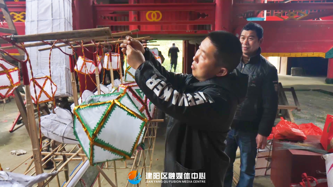 高照灯及其扎糊技艺代表性传承人肖志鹏:“图案是吉祥如意、福禄寿、八仙过海为主体,结合当地古建筑的图案来创作,寓意吉星高照、五谷丰登。” 2018年,高照灯及其扎糊技艺被列入南平市第八批市级非物质文化遗产项目。如今,高照灯会这个当地村民祈求福泽的非遗民俗活动,吸引了越来越多的游客参与其中。