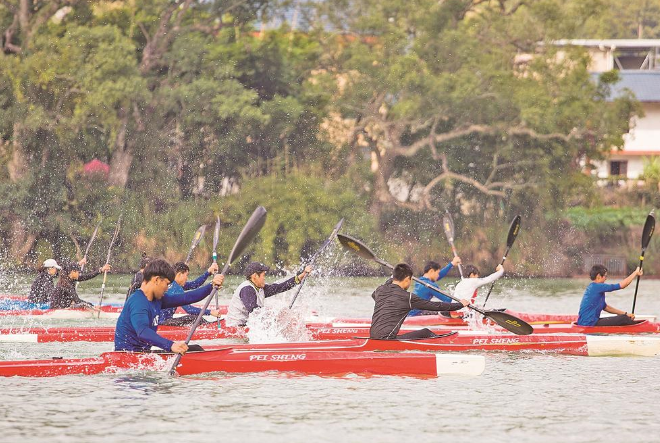 运动员们在金溪河上奋楫争先。